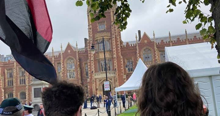 Members of the Industrial Workers of the World in Belfast gathered outside Queens in Belfast with a number of other anti-war activists and students to directly oppose the enthronement of war criminal Hillary Clinton at the university. As the great and the good commenced their celebrations of its first ever female Chancellor at Queens, their pomp and pageantry was drowned out by cries of "Hilary War Criminal!".