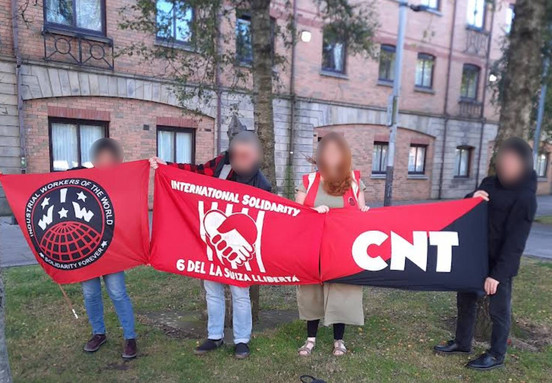 "As part of today's actions we gathered at the International monument in Writers Square, central Belfast to extend our international solidarity at this time. "We demand that all the charges are dropped and echo the call today that syndicalism is not a crime!"
