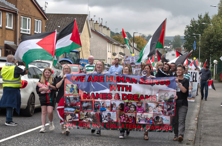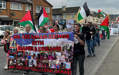 Speaking on the size of the solidarity demonstration as it made its way to ‘the tinies’ a spokesperson said "The turn-out is fantastic, it’s a credit to the people in Strabane. They have put a lot of good ground work into the local BDS campaign which can been seen in their regular actions highlighting the plight of workers in Palestine and the hell created by the apartheid Zionist regime.