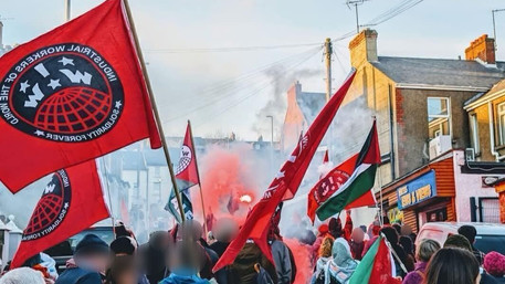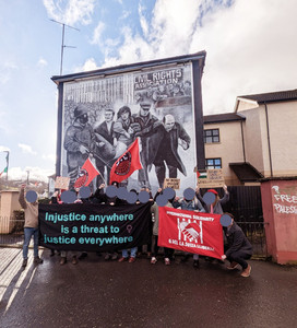 Just before this years annual March for Justice got underway, members of the Industrial Workers of the World (IWW) gathered in the city's Bogside area to express solidarity with 6 bakery workers in the Spanish State known as 'La Suzia 6'. Six members of the CNT-CIT currently facing imprisonment for standing up against the bosses and their trade union activity.