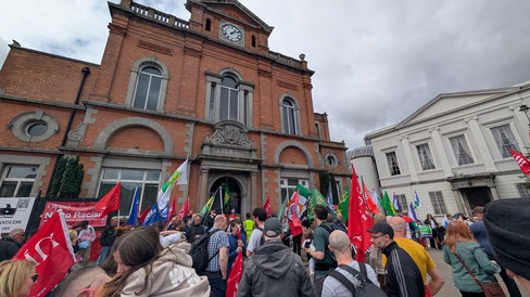 The 'Newry Against Racism' rally drew a crowd of five hundred, one of the largest civic gatherings the city has seen in recent years, out in solidarity. Organised by the People Before Profit Newry & Armagh branch, the rally saw local IWW members, LGBTQ+ groups, Republicans, Socialists, and representatives from the district's entire Trade Union movement standing up against the Far Right with the message that they will never divide our communities.